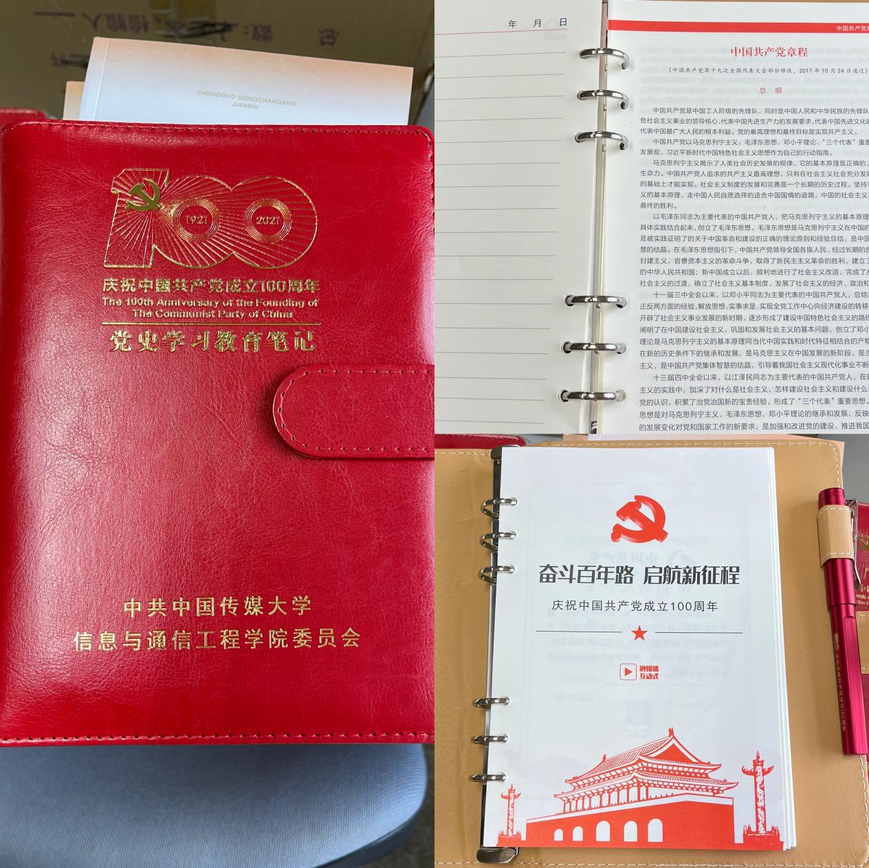 为深入学习贯彻习近平总书记在党史学习教育动员大会上的重要讲话精神,积极落实中国传媒大学党委关于党史学习教育的安排部署,信息与通信工程学院党委积极研究并制定了党史学习计划,为全体党员购买了党史学习书籍并定制了党史学习笔记本。