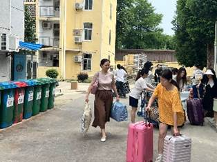 7月4日,学院组织的校区搬迁工作中,旅游管理系党支部老师积极参与,协助学生顺利完成从南望山校区搬至未来城校区。在此过程中,对学生搬到新校区后的学习生活环境进行了介绍和指导,师生之间也增进了感情。