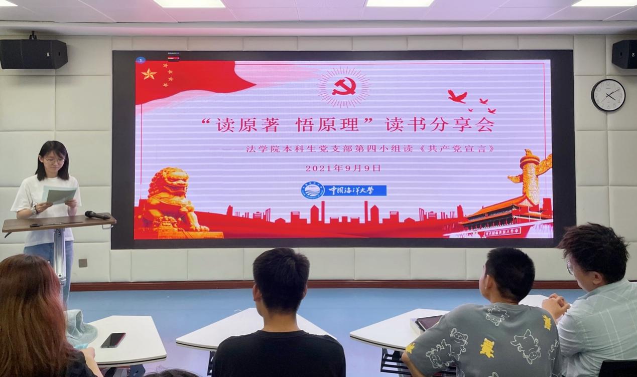 中国海洋大学法学院党委举办“读原著,悟原理”读书思辨会系列活动,引导广大学生党员多思多想、学深悟透,知其然又知其所以然,勉励广大学生党员在常学常新中加强理论修养,在真学真信中坚定理想信念,在学思践悟中牢记初心使命,在细照笃行中不断修炼自我,在知行合一中主动担当作为。