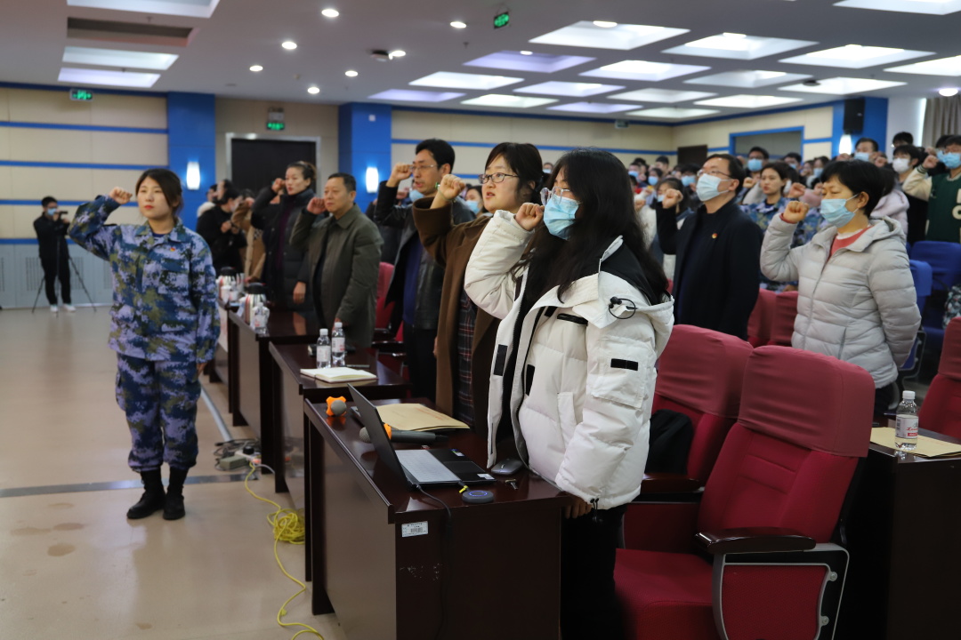 演讲结束后,与会人员怀着激动的心情全体起立,在领誓人的带领下,重温入党誓词,再次感受了铿锵有力的红色誓言。