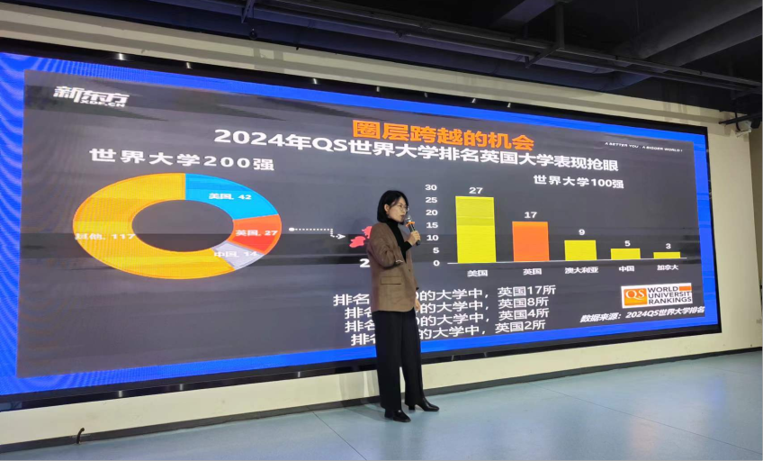 接下来,李老师向同学们展示了留学所特有的优势,包括可享受留学生的利好政策、职位晋升更快、薪资待遇更高。此外,老师还向同学们详细地讲述了成为留学生要做的准备,如需要关注评估英美体系高校的榜单、了解目标学校的排名和王牌专业、做好申请学校的材料准备工作、设置资金预算等。