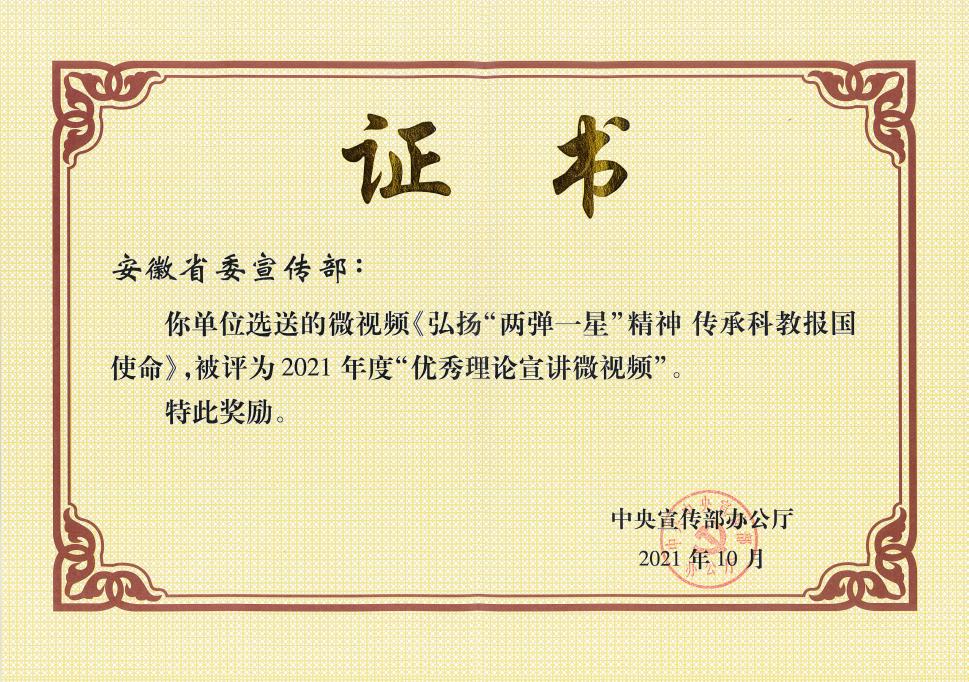 近日,中宣部办公厅公布了2021年度基层理论宣讲先进评选结果,中国科学技术大学制作的微视频《弘扬“两弹一星”精神 传承科教报国使命》(安徽省委宣传部选送)被评为优秀理论宣讲微视频。此次中宣部面向全国共表彰了29个优秀理论宣讲微视频。