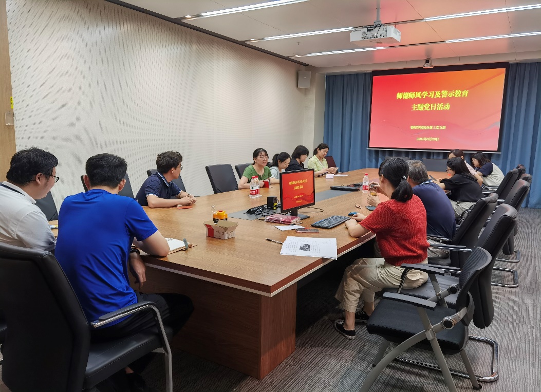 9月20日上午,为深入学习贯彻党的二十大和二十届一中、二中、三中全会精神,学习习近平总书记关于教育的重要论述,大力弘扬教育家精神,加强师德师风建设,培养高素质的管理服务队伍,物理学院院办教工党支部开展师德师风专题学习及警示教育活动。