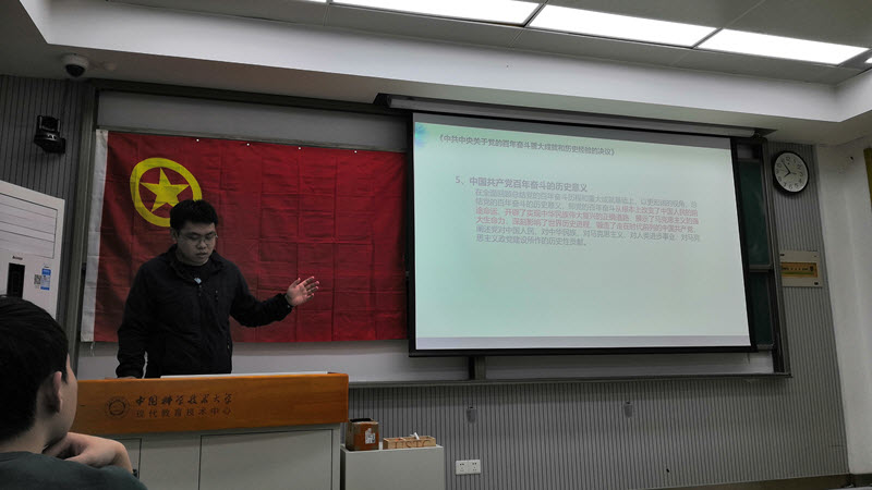 赵泊尧同学从十九届六中全会的历史意义、《中共中央关于党的百年奋斗重大成就和历史经验的决议》、十九届六中全会精神等方面做了介绍并做了总结。