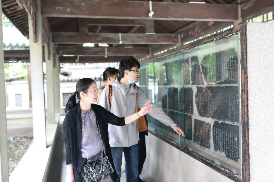 在省图书馆古籍部的碑廊,金老师带着研究生们品读法帖之祖的《淳化阁帖》宋刻石,金老师让大家与古为徒,抛开平时对印刷品的印象,学会透过刀锋看笔锋;通过近距离体会,直入晋唐发现穿越时空的永恒之美。
