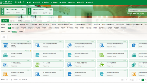 自2019年12月11日试运行以来,信息化办公室积极响应部门、学院、师生诉求,通过网上办事大厅为党政办公室、党委组织部、党委宣传部、本科生院、研究生院、财务处、国际合作与交流处、园艺学院、动物科学技术学院、动物医学院、草业科学与技术学院、理学院等单位开发了一大批流程化服务,同时实现了对某个职能部门或学院所有流程服务的聚合,实现了“一院一大厅”。截止目前,共推出各类型服务近200项,其中依托流程服务平台开发跨部门流程办理服务96项,7256名师生在线办理业务65177次,师生少跑腿206878次,为我校师生的教学、科研、管理提供了极大的便利。