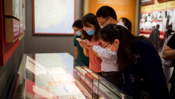 党的辉煌历史是最好的营养剂、最有说服力的教科书,水利与土木工程学院2019级硕士研究生郝泽发现:从《马关条约》的原稿、李大钊就义绞刑台原件,到朱德自用手枪原件、毛主席开国大典时穿的服装,再到深交所开市的吊钟、习总书记考察部队戴过的头盔...大量极为珍贵的历史文物原件让我在中国共产党历史展览馆内能够全方位、全过程、全景式、沉浸式学习中国共产党波澜壮阔的百年历程。当我越是深入的去了解中国共产党,越能真切的感受到这个政党的伟大。身逢盛世,重任在肩,作为一名青年党员,我们肩负党和人民赋予我们的使命和责任,要在工作和学习中敢于创新,勇攀高峰,为实现下一个百年奋斗目标贡献青春力量!(摄影:赵效北 郝泽)