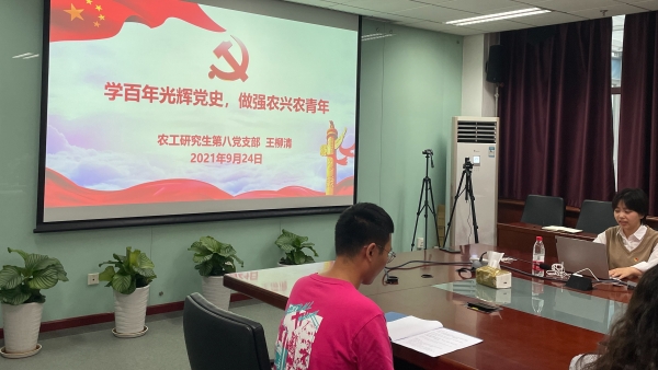 农工研究生第八党支部纪检委员王柳清以“学百年光辉党史,做强农兴农青年"为主题为现场师生讲述了一堂微党课。王柳清结合自身参加庆祝建党100周年大会的经历,带领参会师生共同学习习近平总书记的重要讲话内容,她以中国共产党从“0”到“100”的光辉历程为线,详细阐述了“中国共产党为什么能”的问题。她表示,作为青年科研人员的预备军,我们青春正当时,吾辈更应当自强,做到像邓稼先给杨振宁的信中所提到的那样“但愿人长久,千里共同途”。通过王柳清的讲解,现场师生再次回顾了共产党人艰苦卓越的奋斗精神,更加坚定做强农兴农新时代青年的决心。
