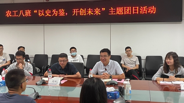本网讯 为深入学习贯彻习近平新时代中国特色社会主义思想,从党的百年伟大奋斗历程中汲取干事创业的智慧,在党史学习中汲取信仰的力量,9月24日下午,工学院农工研究生第八团支部开展“以史为鉴,开创未来”主题团日活动。活动邀请校团委书记范大年老师、工学院党委书记尤泳老师现场指导,工学院研究生辅导员路惠然老师、2020级本科生辅导员颜浩老师出席活动,农工研究生第八团支部成员、工学院2021级本科生团支部代表参加活动。活动由农工研究生第八团支部书记刘照启主持。