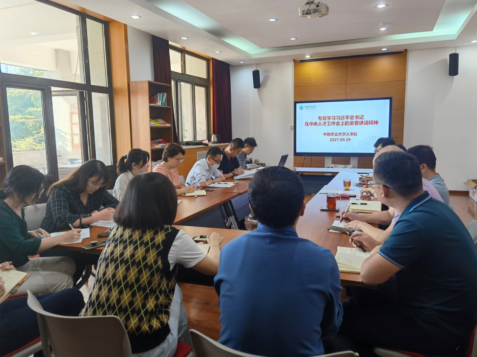 本网讯 9月29日下午,人事处组织全体成员专题学习习近平总书记在中央人才工作会议上的重要讲话精神,并结合学校近期召开的秋季学期工作会议相关部署进行交流研讨,学习活动由人事处处长隋熠主持。