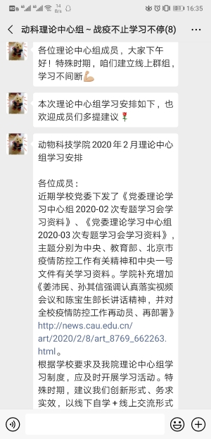 战“疫”时期,动物科技学院党政领导班子坚持理论学习不断线,尝试新方式、务求学习实效,以学习促提升、谋划新学期新发展。