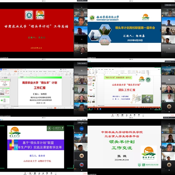 6月28日上午,动物科技学院领头羊计划高校联盟第一届年会通过视频会议的方式召开。原农业农村部科技教育司巡视员刘艳司长,西北农林科技大学副校长陈玉林教授,中国畜牧兽医学会养羊学分会理事长、河北农业大学动科院院长张英杰教授,内蒙古农业大学原副校长李金泉教授,吉林农业大学姜怀志教授,黑龙江八一农垦大学动科院党委书记张爱忠教授,沈阳农业大学动科院副院长白文林教授,内蒙古赤峰市罕山白绒山羊种羊场场长徐慧娟研究员,辽宁禾丰牧业股份有限公司关内区反刍事业线李宏总监等出席会议。动物科技学院党委副书记曹志军教授,副院长王军军教授出席会议。会议由联盟秘书长、动物营养与饲料科学系张微教授,动物遗传育种与繁殖系刘国世教授主持会议。