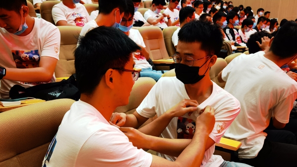 “世界伸出的每一双手,中国没有忘记;中国温暖的每一个人,历史将会见证。”面对在疫情防控特殊时期开启求学新篇章的2020级研究生,为了让大家进一步弘扬战疫精神、深化爱国情怀,同时将开学典礼融入新生使命教育,学院设置典礼特别环节,播放战疫专题片《国·家·我》,在“爱国、爱家、有我”的情感共鸣中,学院领导为2020级研究生代表佩戴上象征着“加入动科大家庭、成为动科一份子”的院徽。一枚小小的徽章,承载着爱党、爱国、爱校、爱家的丰富内涵,更具别样意义。而现场的同学们纷纷前后、左右互相佩戴,共同见证、经历这值得纪念的一刻。
