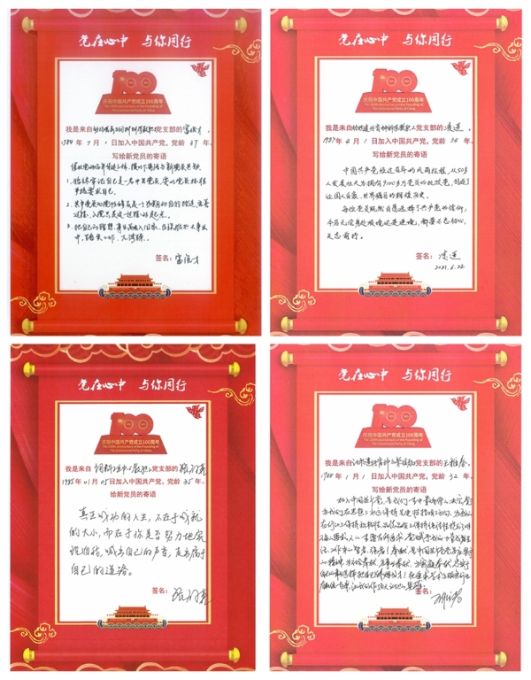 党龄36年的李胜利教授在信中对新党员写道:“牢记使命,始终坚持为党和国家培养高素质人才和把论文写在祖国大地上的初心,为实现中华民族的伟大复兴做出贡献。”