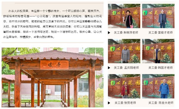 本网讯 10月11日,学校关工委启动“暖亭行动”,关工委老同志在西校区心灵花园轮流值班,倾听学生心声,答疑解惑。