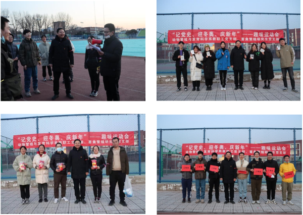 中国农大新闻网讯 为巩固党史学习教育成果,庆祝2022年新年和北京冬奥会到来,传播奥林匹克团结、友谊、和平的宗旨和理念,12月31日下午,动物科学技术学院动物繁殖与发育科学系教职工党支部与畜禽繁殖研究生党支部于西校区田径场联合举办“记党史、迎冬奥、庆新年”——趣味运动户外知识竞赛。学院党委书记郭晓旭参加活动,动物繁殖与发育科学系全体党员、积极分子等38人参与本次活动。