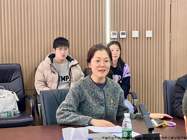 孙艳争分享了临床兽医学系教工与博士联合党支部的特色工作做法。党支部对标党建“双创”要求,依托“一系、一院、三中心”开展工作,充分发挥师生联合优势和学科特色,已成为教学、科研及社会服务的坚强堡垒。希望两院师生能够进一步加强党建和社会服务方面的交流合作,增进学科间的共通共融。