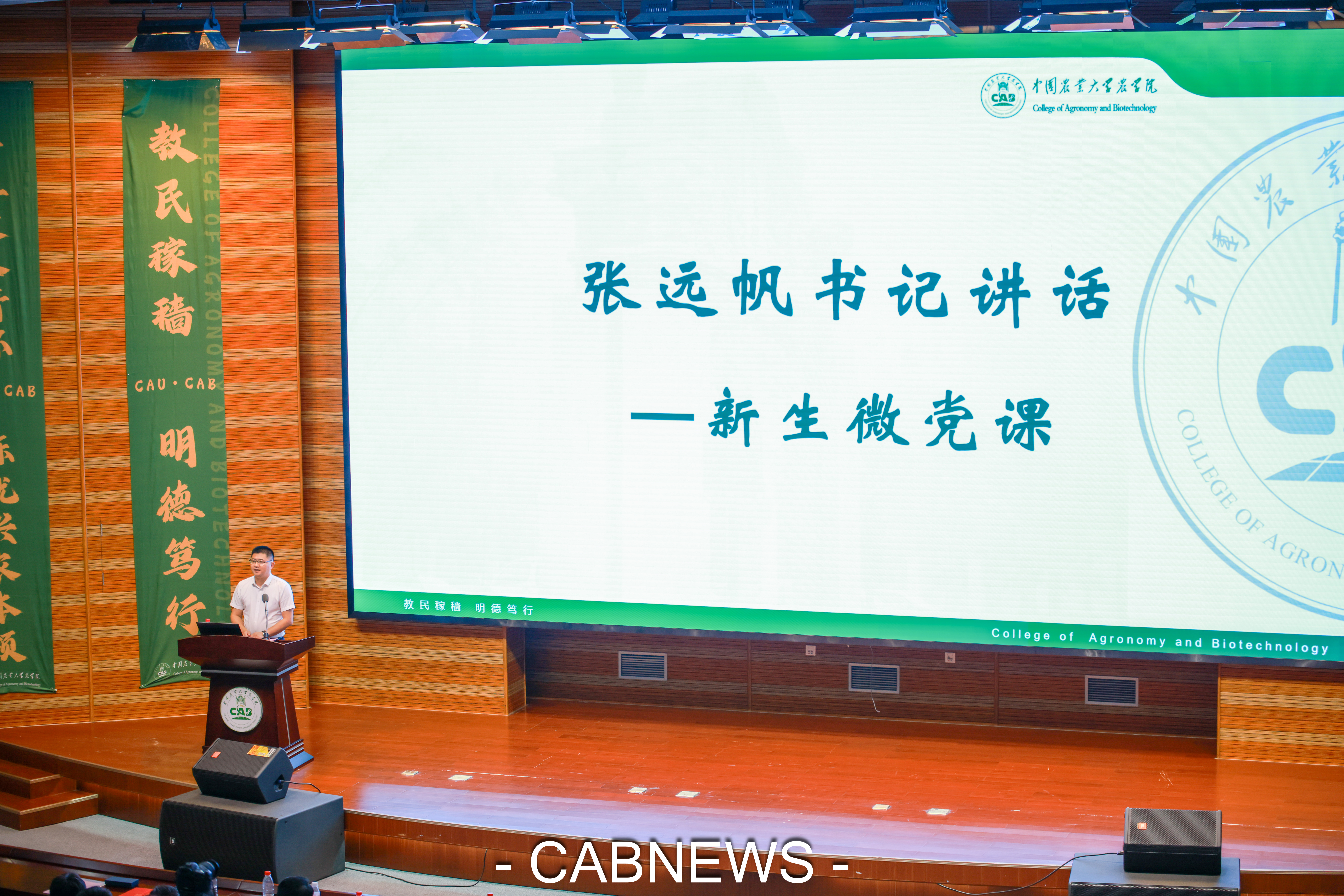 张远帆书记以“弘扬三色文化,做强国青年”为题讲授新生微党课。他提到:赤诚红——许党报国,奉献担当,广大青年生逢盛世,应树立远大理想,展现青春作为,赓续红色血脉,贡献青春力力量;生命绿——勇担使命,茁壮成长,希望同学们在学院强大的师资力量、校友资源、奖助机制等支持下全面发展,向上生长;厚土金——强农先锋,旗舰作为,同学们应以旗舰标准要求自己,坚持落实“七个一”行动,不放松,不放纵,不放弃,牢记校训,更好地为强国建设服务,为人民服务,形成强农兴农的蓬勃力量。
