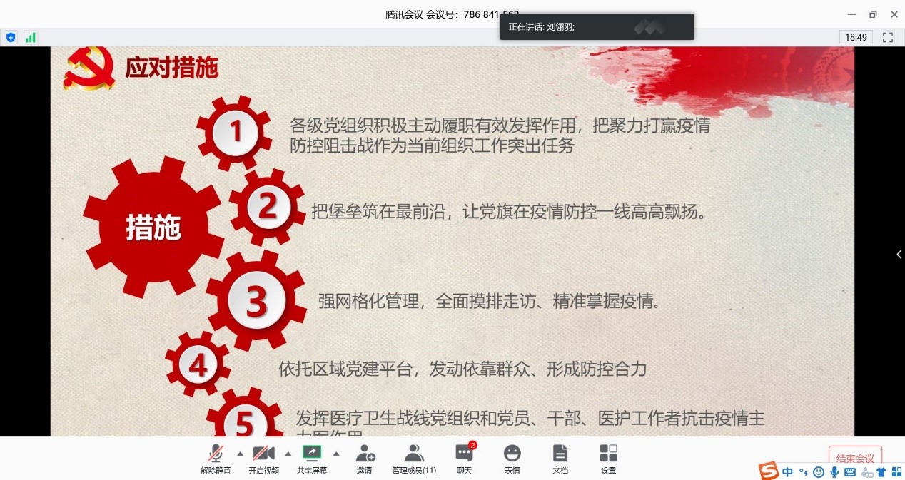 4月18日至19日,财政金融学院第三十五期院党校十二个学习小组纷纷开展了以“让党旗在疫情防控斗争第一线高高飘扬”为主题的讨论展示课,本次展示课通过腾讯会议平台线上举行,由各小组组长分别担任会议主持人。