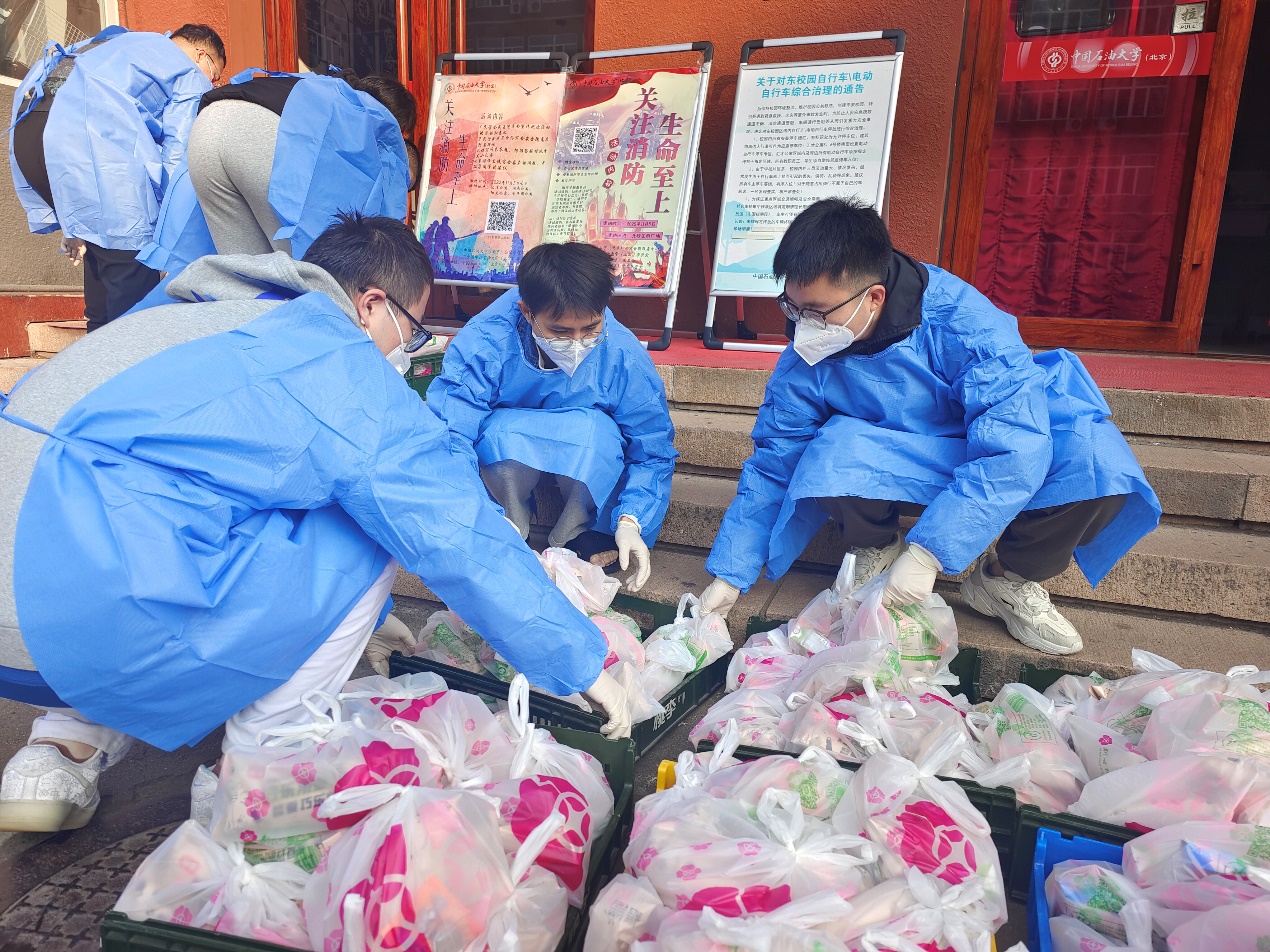 ===突击队员们不停地忙碌,无论白日还是黑夜,把一份份温暖送到隔离学生手中===