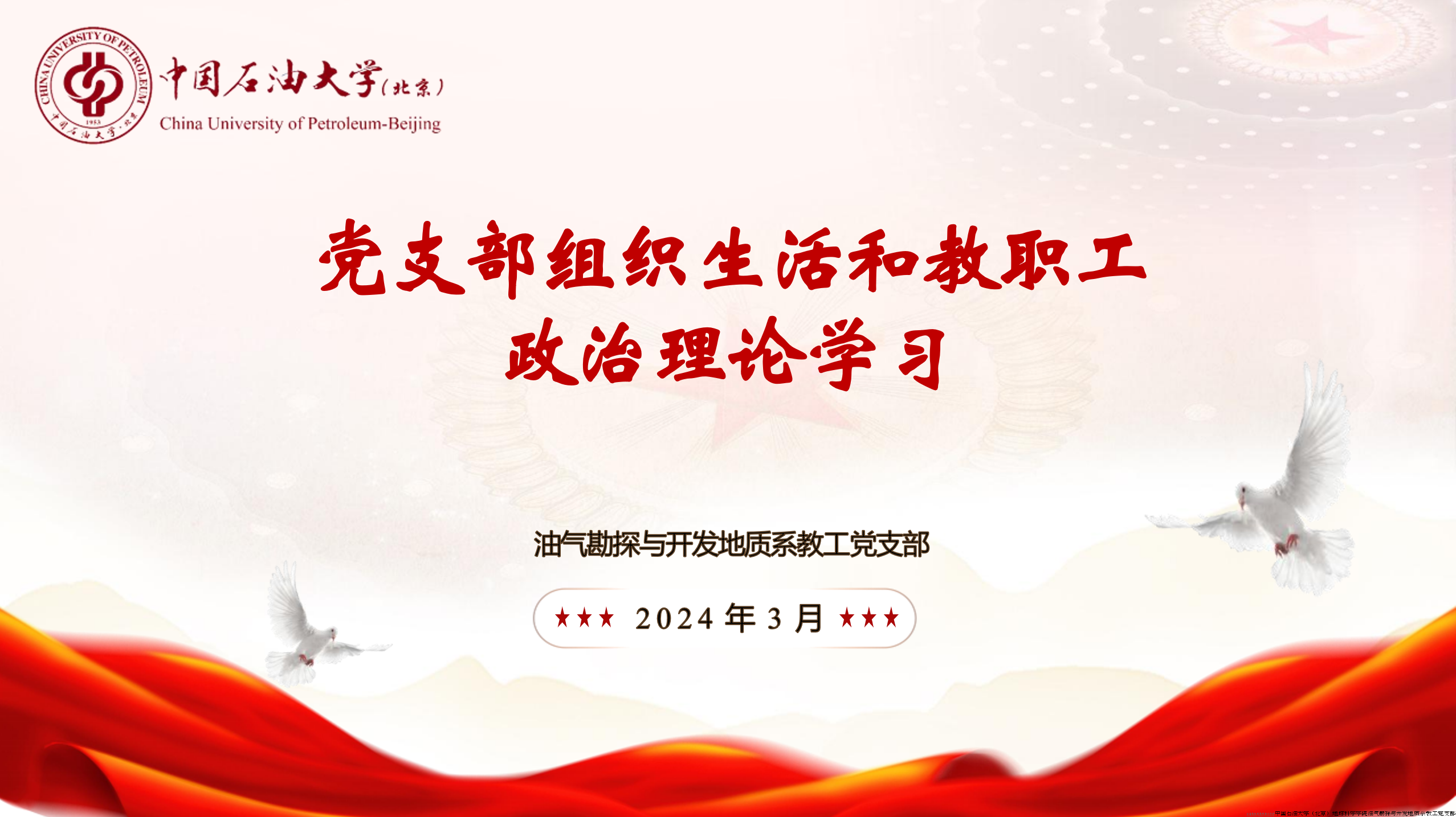 2024年3月14日,油气勘探与开发地质系教工党支部组织开展“党支部组织生活和教职工政治理论学习”,约二十名党员和教职工参加了本次组织生活会,会议由支部书记周勇同志主持。会议主要分为三部分进行: