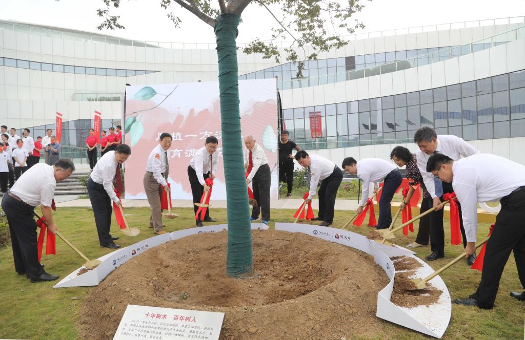 校领导,四个时期的校友、老领导、师生代表合育一棵树