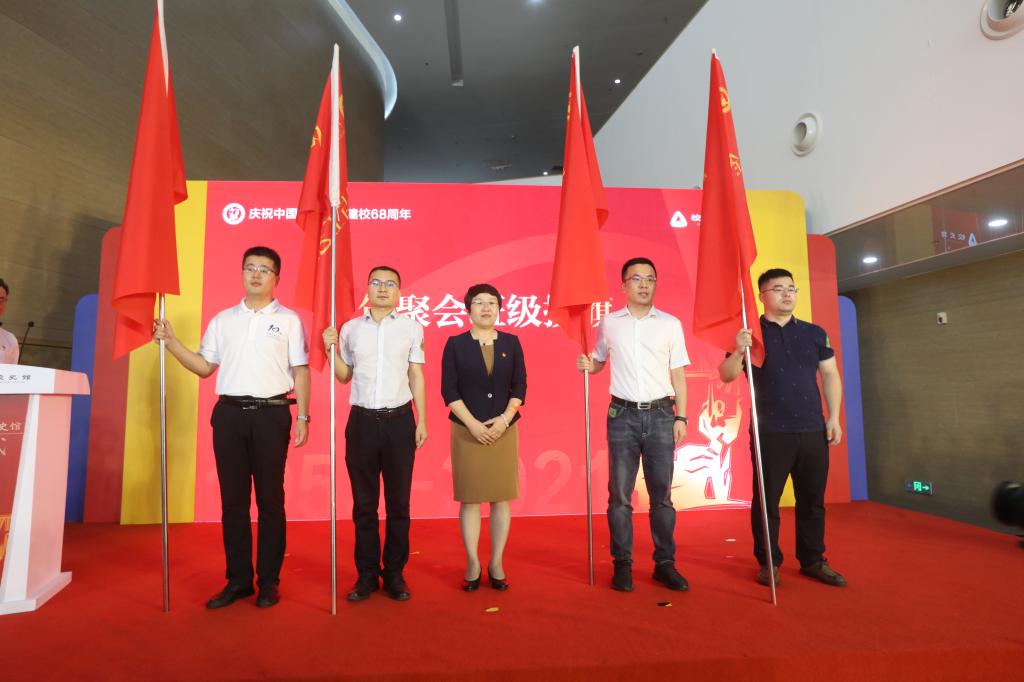 万云波宣读校友之星表彰文件,张玲玲、操应长为秩年聚会的班级授旗。现场播放校友之星获得者们表达对母校感激与祝福之情的视频资料。视频中,他们激励更多石大人奋发图强。
