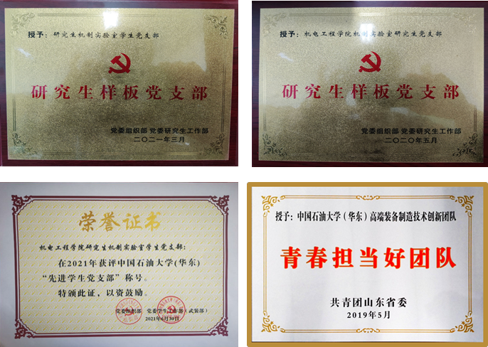研究生高端装备制造学生党支部成员共获省级“高等学校优秀学生干部”1人次;研究生国家奖学金8人次;“山东省研究生优秀成果奖”5人次,“山东省专业学位研究生优秀实践成果奖”3人次,“山东省优秀毕业生”7人次;校级“优秀学生干部”12人次,“优秀学生”14人次,“优秀共青团员”15人次,“优秀共青团干部”10人次。