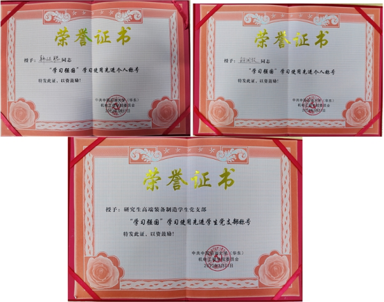研究生高端装备制造学生党支部所有成员每日均在“学习强国”进行理论学习,不断提升自身自身政治素养,扩宽国内外视野,在搞好科研本职工作的同时,思想理论学习也不松懈。下一步将继续抓好“科研”与“思想政治”两方面工作,不负入党初心,为新时代民族复兴贡献自己的力量!