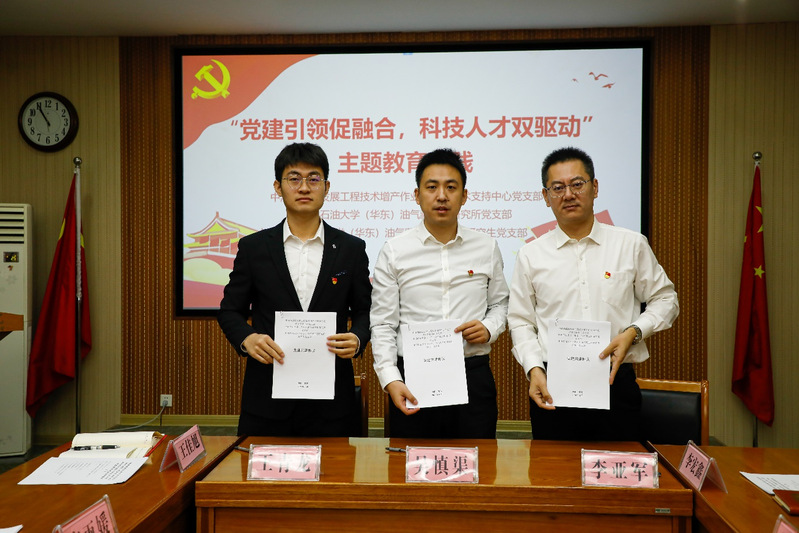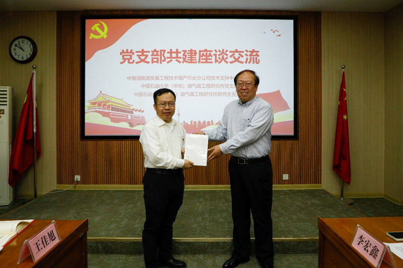 【本站讯】为深入学习贯彻习近平新时代中国特色社会主义思想,充分发挥党建引领作用,促进产教融合,深化校企合作,1月25日,油气藏工程研究所党支部、油气藏工程研究所研究生党支部与中海油能源发展工程技术增产作业分公司技术支持中心党支部联合开展“党建引领促融合、科技人才双驱动”主题教育实践活动,签署党建共建协议。中海油能源发展工程技术增产作业分公司主任工程师王宏申、石油工程学院副院长齐宁、石油与天然气工程系主任姚传进、各党支部书记、党员代表参加本次共建活动。活动由油气藏工程研究所党支部书记李亚军主持。