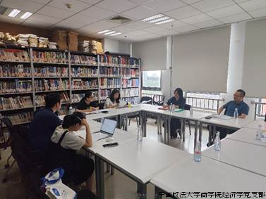 2024年6月20日上午10点,经济学党支部在科研楼B705组织召开“全国党建工作样板支部”建设研讨的支部委员会议。会议由党支部书记黄立君主持,支部委员张弛、熊柴、周敏丹参加,商学院党委书记李欣宇、党委副书记何欣、党务秘书徐庆列席会议,共同商讨经济学党支部建设“全国党建工作样板支部”的创新举措与发展方向。