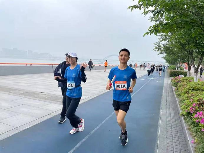 参加健康跑的三结对党员和积极分子一边以拼搏精神和毅力参加团队赛和个人赛,一边欣赏沿途的美丽江景,特别是沿途经过始建于上世纪40年代的钱塘江大桥(钱江一桥)和建成于2004年的复兴大桥(钱江四桥)使得大家充分感悟到改革开放给国家经济社会发展带来的翻天覆地的变化。