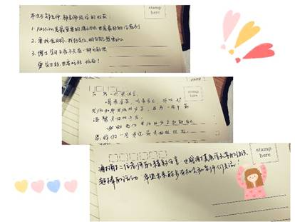 本次下午茶活动也给同学们带来了诸多的感触。不管是学术压力问题,还是海外留学问题,老师们都给出了耐心风趣的解答。茶香四溢,同学们满载而归。下图中展示了部分同学就下午茶活动所写下的活动感受。