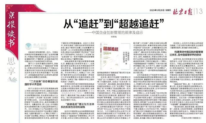 《北京日报》全文刊登许庆瑞院士《从“追赶”到“超越追赶”——中国企业创新管理的规律及启示》