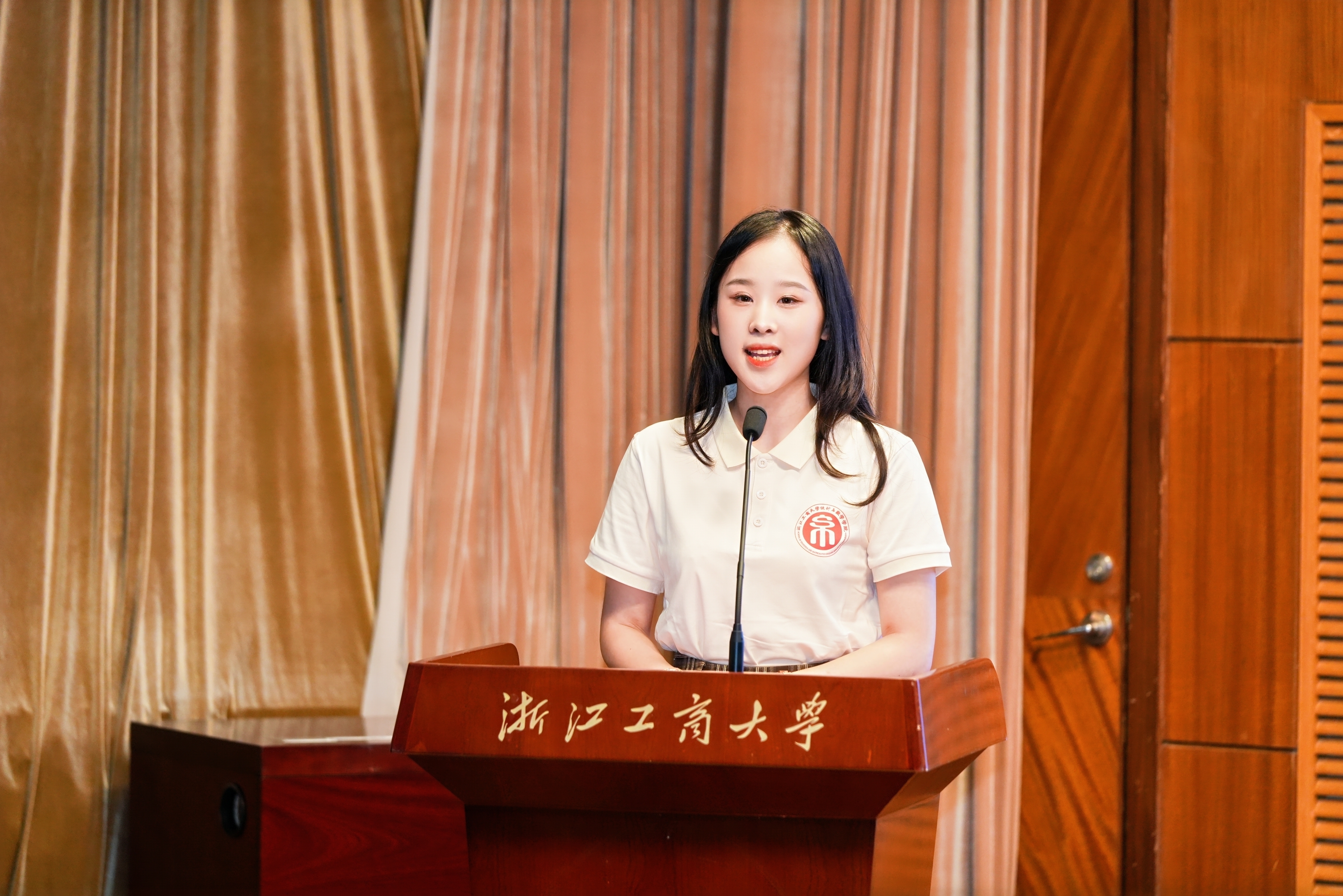 “金秋九月,青春启航”。应用统计专业23级硕士研究生叶嘉雯作为老生代表慷慨发言。她分享三点感悟与大家共勉:一是要怀揣高远梦想,勇敢踏上新征途,在统计学院的支持下大胆追梦、造梦、圆梦;二是要深耕专业学海,矢志不渝攀高峰,以严谨的态度和不懈的努力,脚踏实地,挑战自我;三是要积极参与实践,勇于担当社会责任,要立志投身其中,做有理想、敢担当、能吃苦、肯奋斗的新时代好青年,以践行社会责任、实现个人价值。