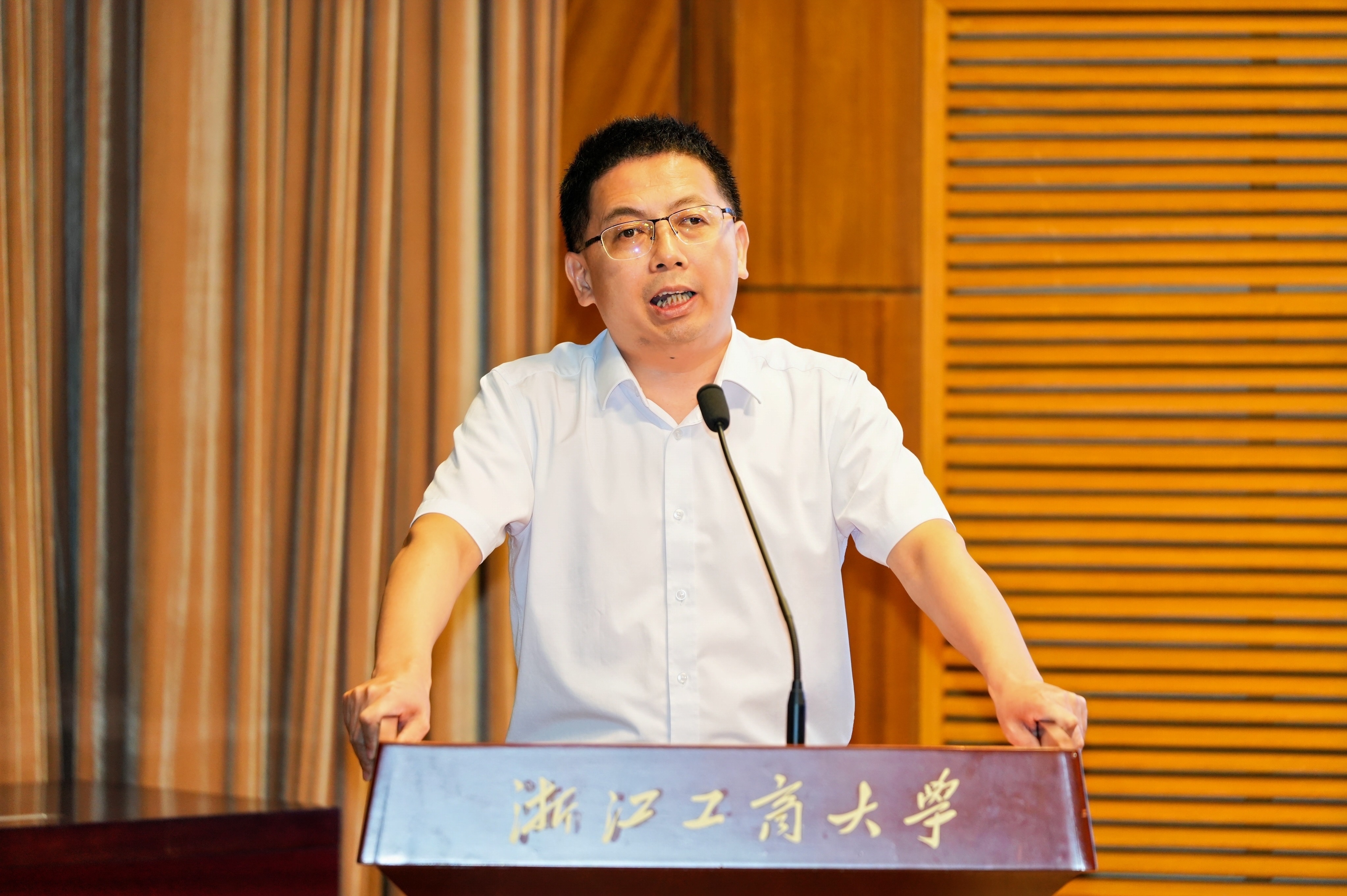 院长程开明代表学院全体师生对2023级研究生新生的到来表示热烈欢迎。台风过后,是收获的季节,也是升学的季节。带着对于研究生未来贡献的期待,程开明请在座的新生一起思考三个问题:研究生为何要研究?研究什么?如何研究?接着程院长在后续的演讲中一一给出答案,带领着新一届研究生叩响命运之门。最后,程院长祝愿新同学们在接下来的研究生生涯中取得辉煌的成就,乘势而上、逐光而行,在学术旅程中收获满满!