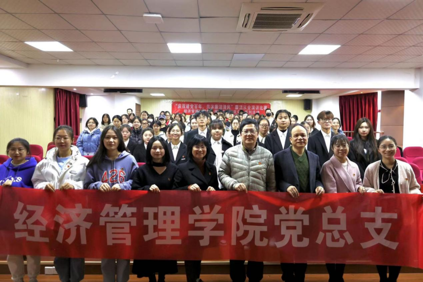 为大力弘扬“以廉为荣,以贪为耻”的廉洁文化理念,营造廉洁从业、诚实守信、勤勉敬业的校园文化氛围,加强经济管理学院学生们的廉洁从业意识,2021年11月24日下午15:00在25C3报告厅举行了“庆祝建党百年,共沐廉洁清风”廉洁从业演讲决赛。出席本次活动的有:校纪委办公室主任袁腾辉老师、经济管理学院党总支书记励业老师、副书记丁佩芬老师、组织委员余璐璐老师、组织员王燕静老师、10位参赛选手以及经济管理学院第十一期党校125位学员。