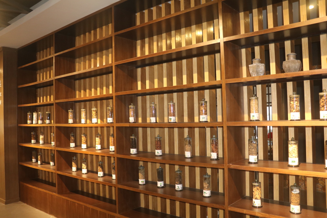 “中药大观”展厅中展示了具有代表性的中草药类型。