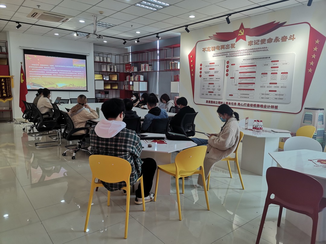 在预备党员转正式党员环节中,满预备期党员宣读转正申请书,结束宣读后由设计学院2021级辅导员以及正式党员讨论转正结果。后公布讨论结果,满预备期党员正式成为正式党员。
