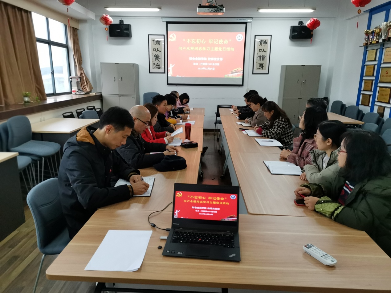 12月24日,财会金融学院组织教师党支部全体党员在分院会议室开展主题党日活动,专题学习卢永根同志先进事迹。教师党支部书记王茜简要介绍了卢永根同志的先进事迹,号召全体党员教师做习近平新时代中国特色社会主义思想的坚定信仰者和忠实践行者;立足本职岗位,勇于担当负责,做党和人民满意的“四有”好老师;要对标卢永根这样的先进典型和标杆,真抓实干,不懈奋斗,努力书写学校“双高”建设时代新篇章。