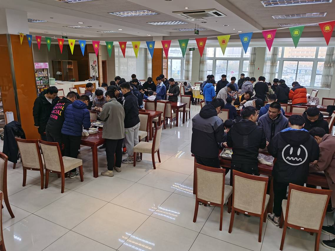 活动伊始,校后勤食堂积极配合我院做了大量的准备工作,从准备面板到蒸屉的摆放都做了精心的安排。尽管天气有些冷,但是欢声笑语不断,大家情绪高涨,积极参与,整个包饺子过程,大家都有说有笑,分享着包饺子的经验,交流学习经验,场面十分热闹。包饺子一系列过程在欢快的气氛中有序的进行。