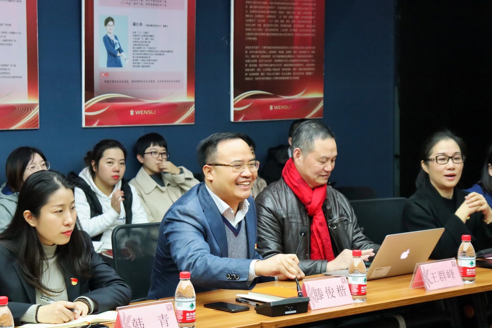2020年12月4日下午,商贸分院全体教师党员集体前往杭州万事利丝绸文化股份有限公司,开展商贸分院教工党支部与万事利丝绸股份有限公司党支部的共建对接仪式。