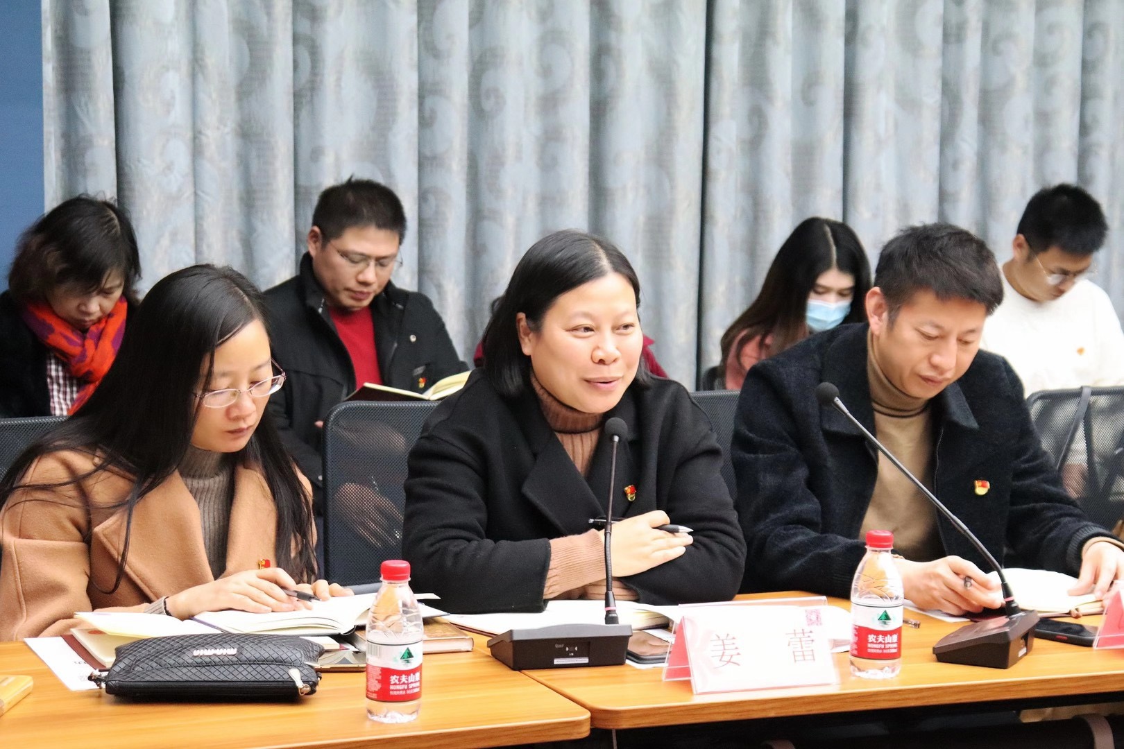 商贸分院党总支书记姜蕾介绍了分院党建的基本情况。商贸分院党总支部以“融合创新,创先争优”为目标,为专业群在探索创新创业人才培养工作中取得突破做出了重要贡献。下辖的教工党支部认真开展党建工作,充分发挥党组织的战斗堡垒作用和党员的先锋模范作用,在思想引领、教书育人、科学研究、社会服务、疫情防控等方面卓有成效。