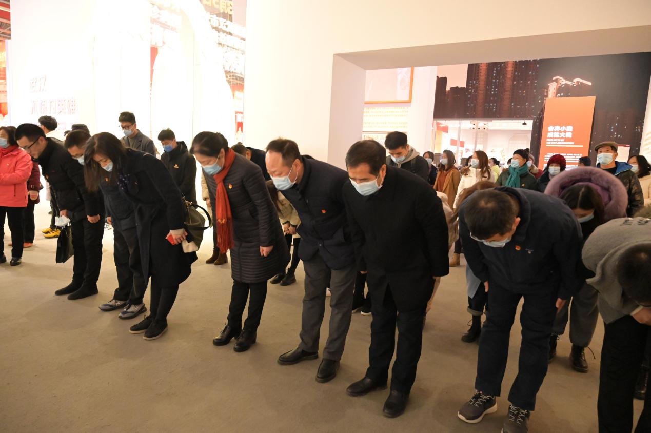 在参观的过程中,看到一面面鲜红战旗,党旗在阻击疫情的战场上永远高高飘扬。党员组成突击队、先锋岗,冲在前、干在前,甘于奉献,肯与担当,也有很多街道社区的工作者在平凡的岗位上默默坚守,为疫情防控无私奉献。在灾难面前,中华民族像石榴籽一样紧紧抱在一起,一幕幕感人之壮举、一场场战斗之凯歌,令人感动。在第三展厅,面对在此次疫情中做出伟大牺牲的医务工作者生平记录,姚莉副校长和全体参观师生向战“疫”中牺牲的人民英雄致敬,向疫情中逝世的同胞默哀。