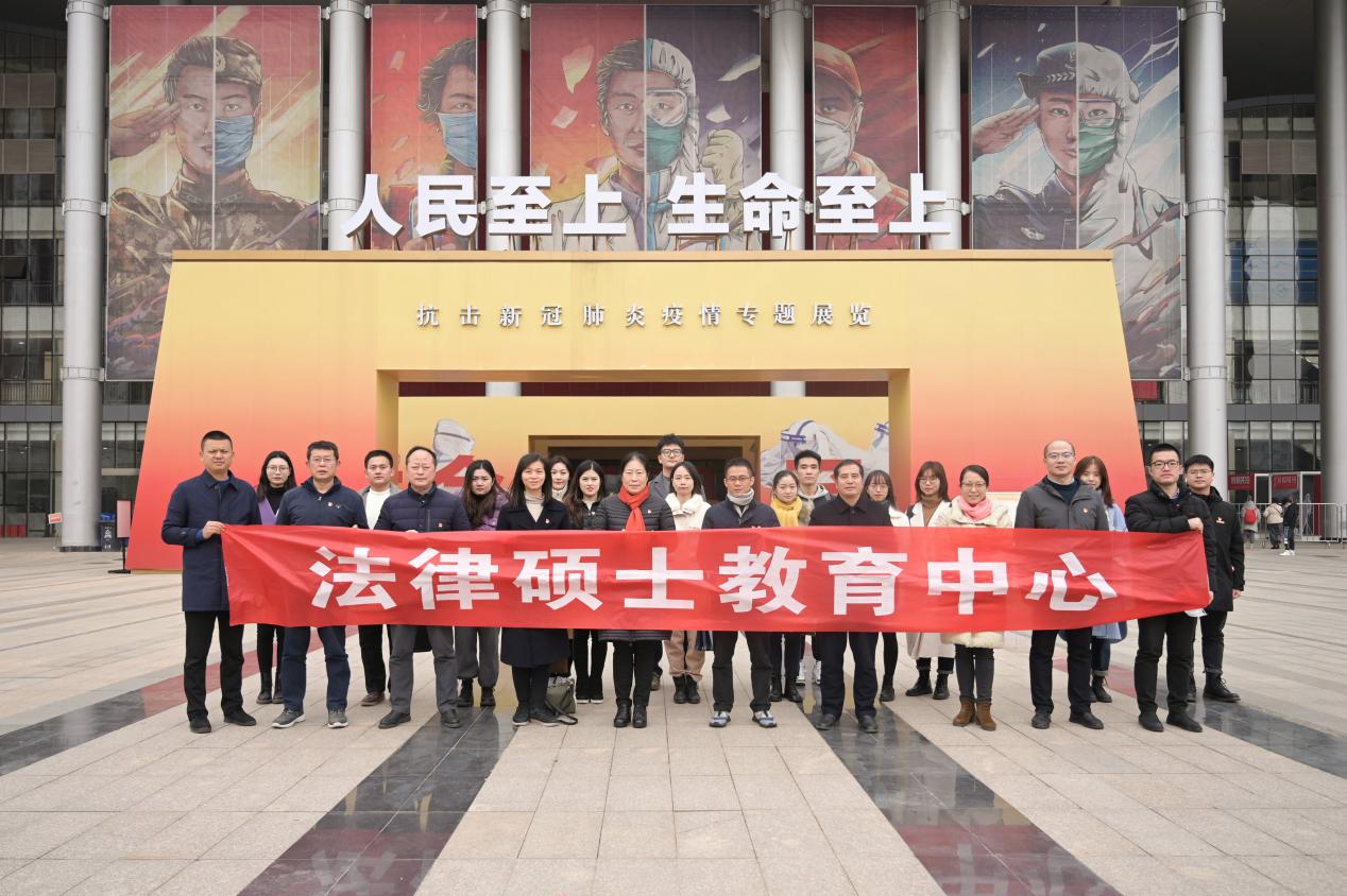 为了加强新时代党建示范创建和质量创优工作,推进全国高校党建工作样板支部建设,12月15日上午,法硕中心学生党总支组织了“人民至上 生命至上——抗击新冠肺炎疫情专题展览”参观活动。校党委常委、副校长姚莉,校人才办主任兼法硕党建导师陈柏峰,法学院党委书记张学平,校团委书记梁娜,组织部副部长陈金川,党委研工部副部长雷磊,法律硕士教育中心主任简基松,法学院党委副书记、法硕学生党总支书记易育等老师带领法硕中心学生党支部书记、优秀学生党员前往武汉客厅参观了此次展览。