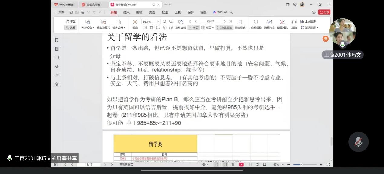 “星辰大海,梦想起航,青春壮志,勇往直前”,在线上留学经验分享会上,韩巧文师姐向我们分享了自己三年准备留学的经验。她认为,留学是一个概率事件,只要达到门槛就有机会,但也不能掉以轻心。师姐分享了留学申请的全过程,她指出,留学申请需要关注标化成绩、实习经历、比赛成绩、科研经历等,不同地区有不同的侧重点。另外,她还详细介绍了雅思、GMAT的备考经验,并强调了执行力、拒绝拖延、目标清晰的重要性。最后,韩巧文师姐分享了自己对留学的看法。她认为留学是一条出路,但需要早做准备,不能掉以轻心,她提醒大家要根据自己的需求选择留学目的地,不能只盯着排名高的学校。