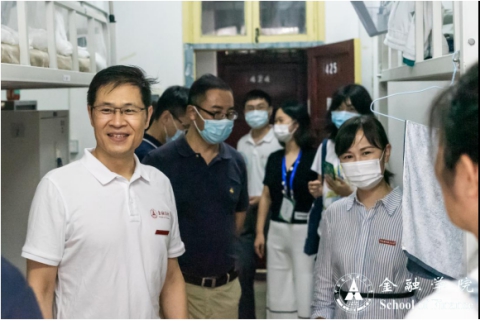 下午3:00,院长余明桂一行走访本科生寝室,详细了解新生报到以及住宿情况。走访中,余明桂院长给予新生最诚挚的欢迎和关怀,希望同学们来到大学后尽快调整状态,在生活上要学会自立,自我管理,在学习上要提早规划,合理安排。吕勇斌副院长叮嘱同宿舍的同学们在学会独立生活的同时要互相关照。黄小妹副书记提醒同学们增强防疫防火防盗意识,遇到困难时及时与辅导员联系。金融学系主任冀志斌老师和保险系副主任胡祥老师提醒同学们注意防范诈骗行为,远离校园贷和电信诈骗。金融工程系主任陈红老师与投资系主任王清平老师则向新生及家长们介绍了相关专业的特色。