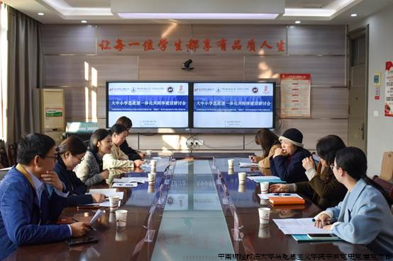 11月21日下午,中南财经政法大学马克思主义学院“全国样板党支部”中共党史党建党支部 “强国行”专项行动走进武汉市第三寄宿中学,与武汉市第三寄宿中学、武汉小学共同举办大中小学思政课一体化共同体建设研讨会。活动由学院党委书记邓杨主持,武汉市第三寄宿中学党总支书记马宁、武汉小学校党总支书记吴海英以及各学校教师代表参加会议。