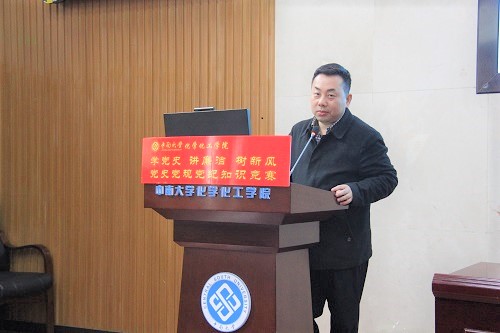 为深化党史学习教育,加强党风廉政宣传教育,在全院营造积极进取、风清气正良好氛围,11月17日下午,学院党委在新校区化学楼133报告厅成功举办“学党史 讲廉洁 树新风”党史党规党纪知识竞赛。全院8个教师党支部与20个学生党支部参加比赛。院党委书记罗永忠、副书记刘有才出席活动。