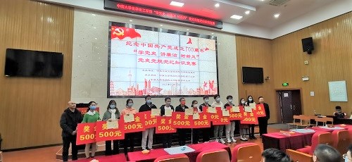 最后,在全场观众的期盼中,主持人根据各支部比赛得分情况宣布了本次竞赛的获奖名单,并向获奖党支部表示祝贺。罗永忠书记和刘有才书记分别向获奖队伍代表颁发奖状。“学党史,讲廉洁,树新风”党史党纪党规知识竞赛圆满结束
